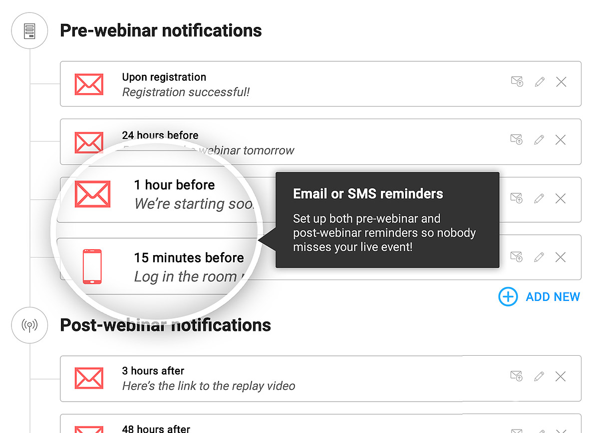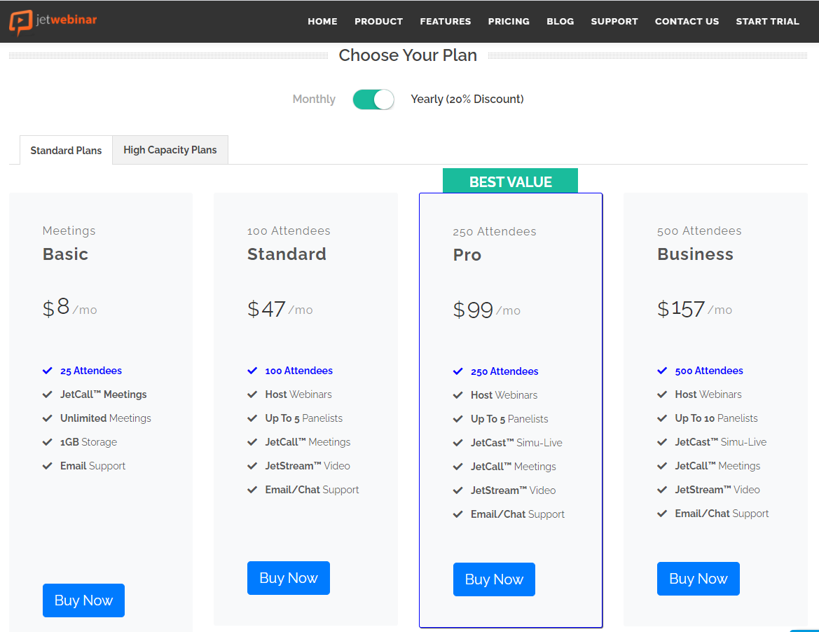 JetWebinar has built a solid, browser-based conferencing software that can also host automated webinars. But, their platform wasn’t optimized for automated webinars or marketing them. JetWebinar’s first two pricing tiers don’t even include an automated webinar feature.