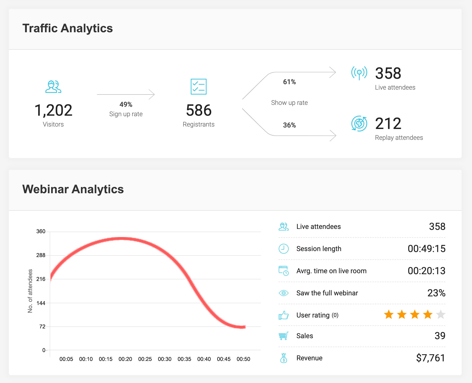 EverWebinar’s cost is all-inclusive ー you’ll never be penalized with a higher priced plan while you’re working to upgrade your marketing game.